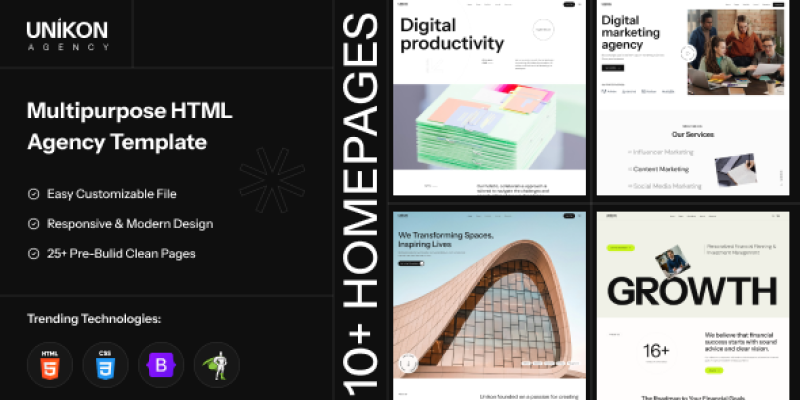 **Unikon HTML Template: Build Your Professional Agency Website Fast** Struggling to create a profe